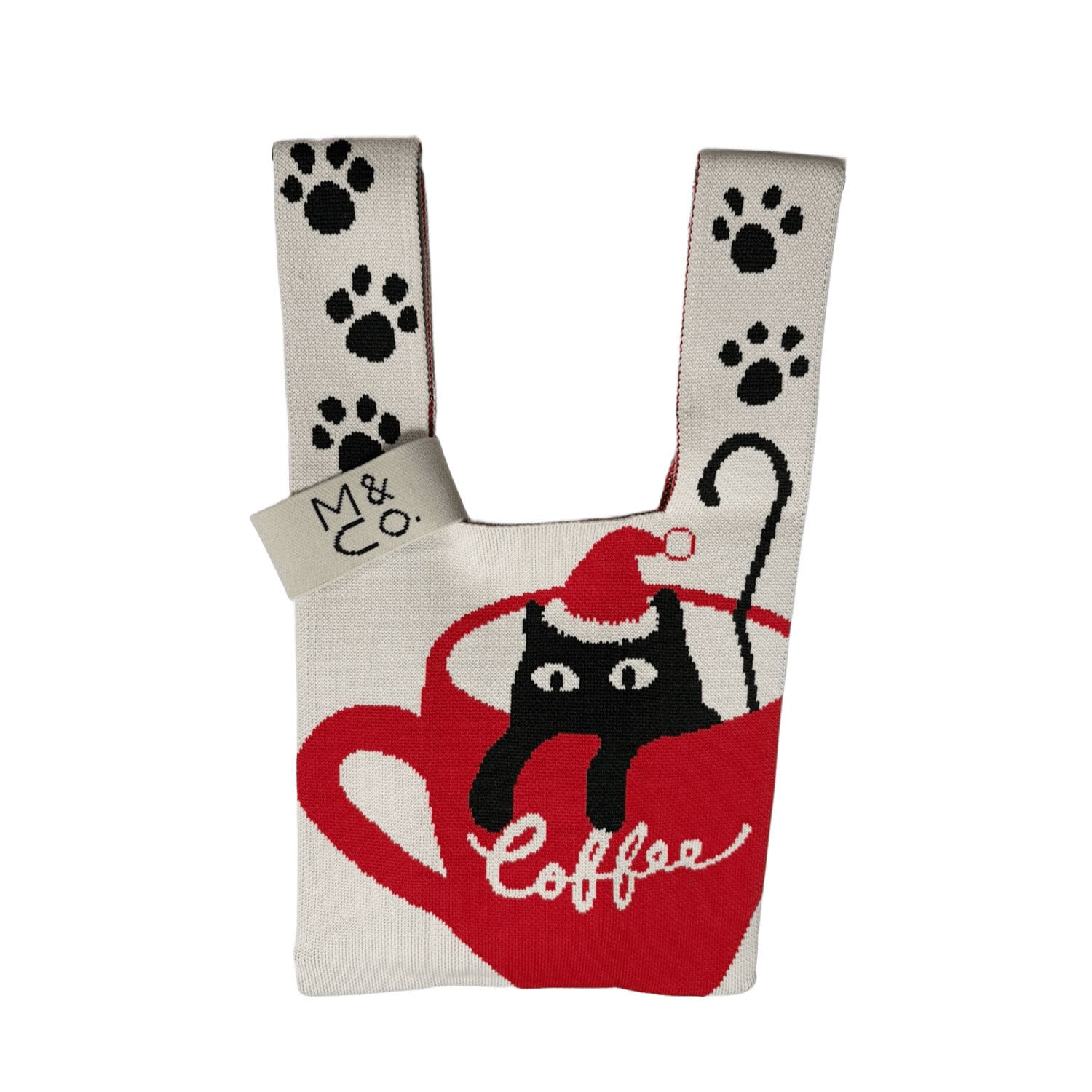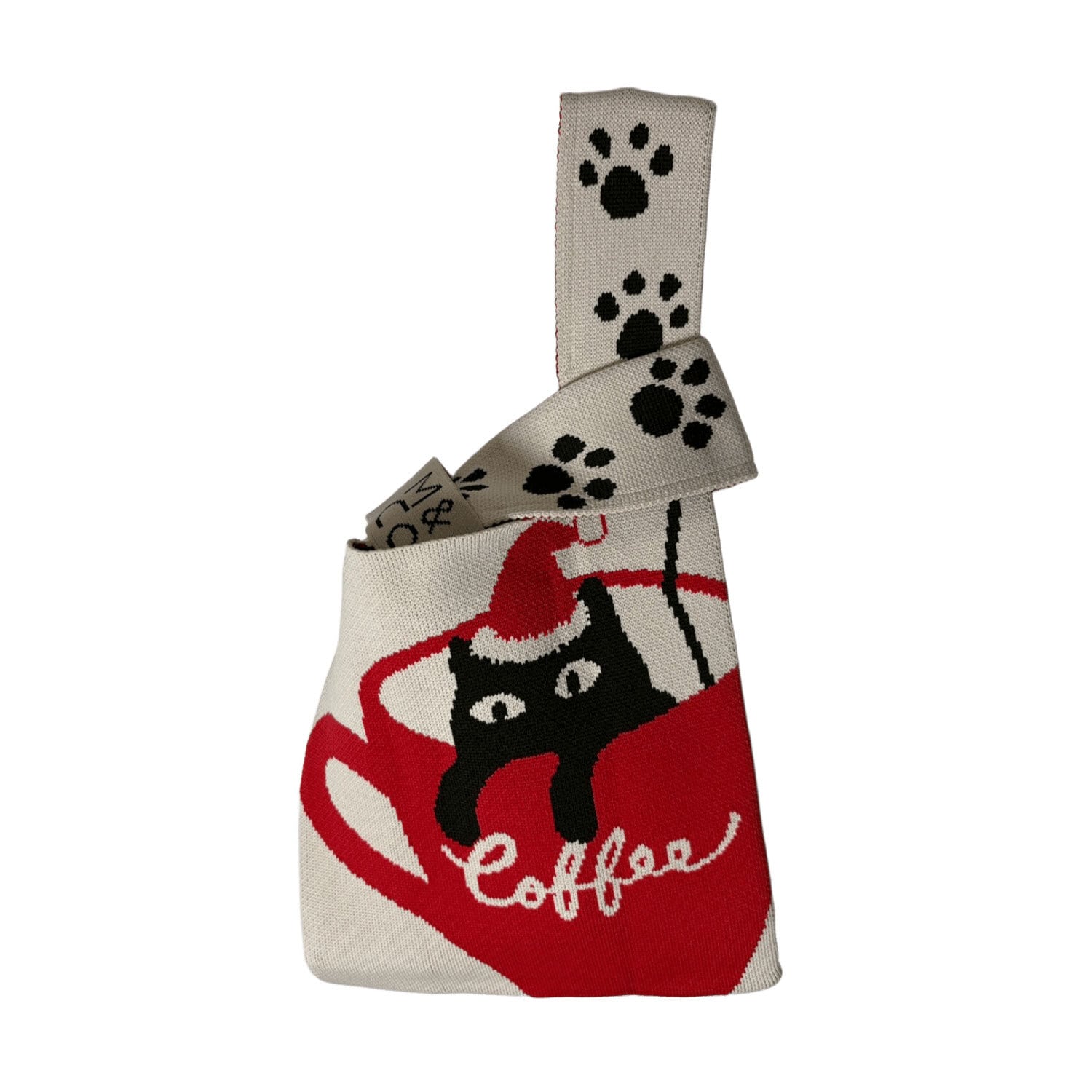 スタイリッシュさと機能性を兼ね備えたニットバッグ ネコ/サンタレッド