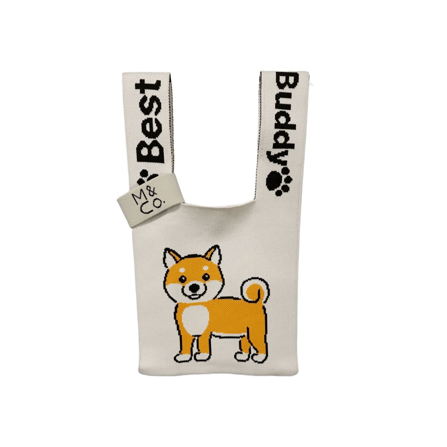 スタイリッシュさと機能性を兼ね備えたニットバッグ 柴犬