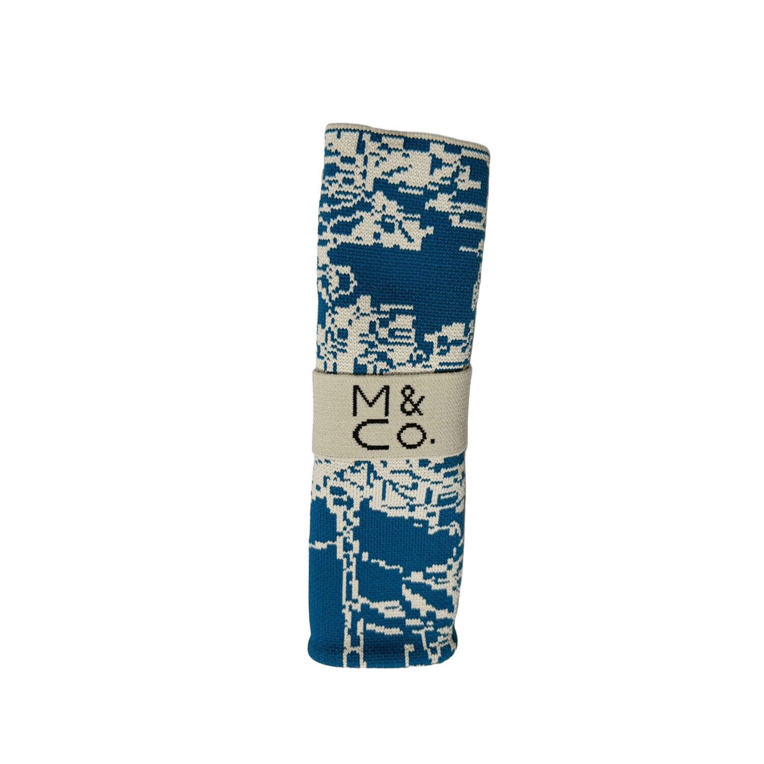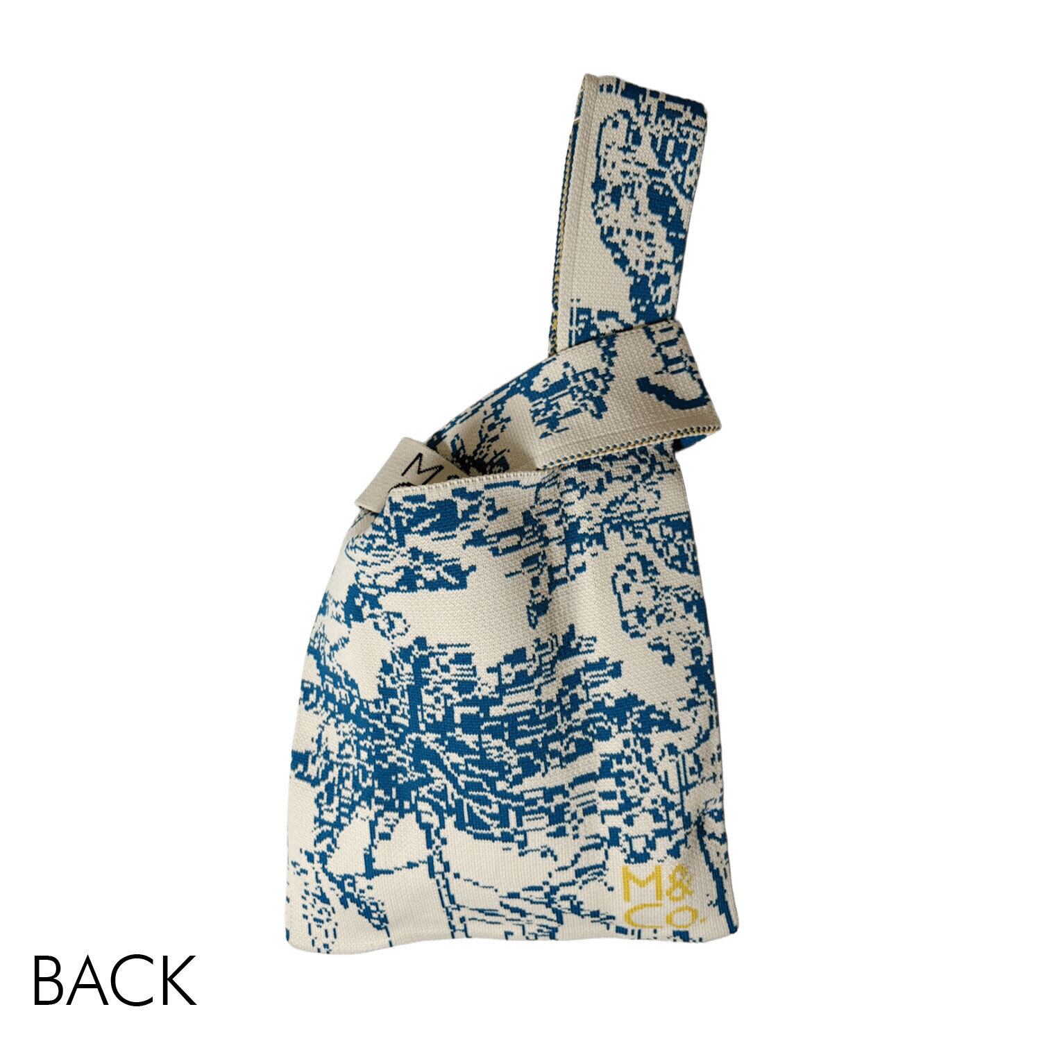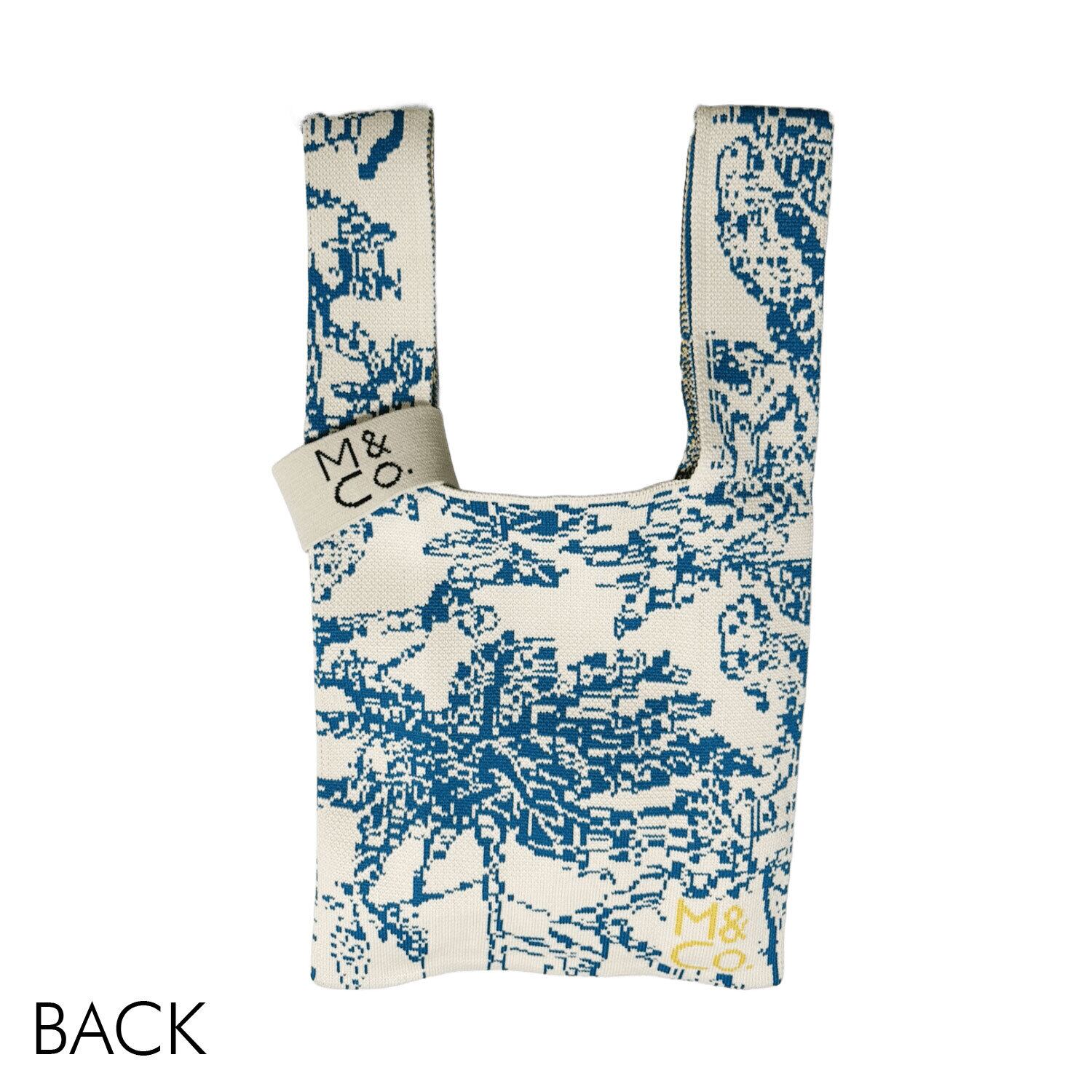 スタイリッシュさと機能性を兼ね備えたニットバッグ 表裏柄違い ブルー