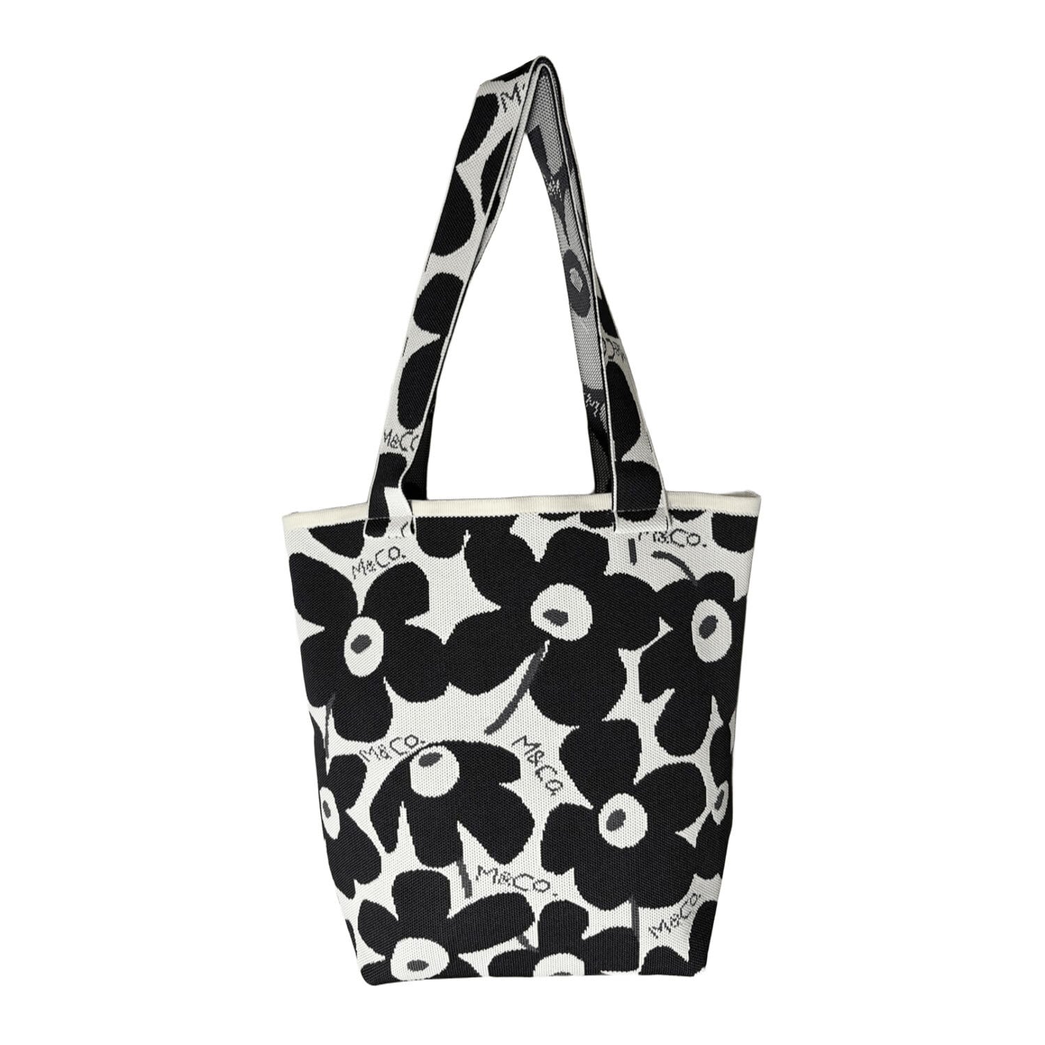 スタイリッシュさと機能性を兼ね備えたニットトート フラワー ブラック