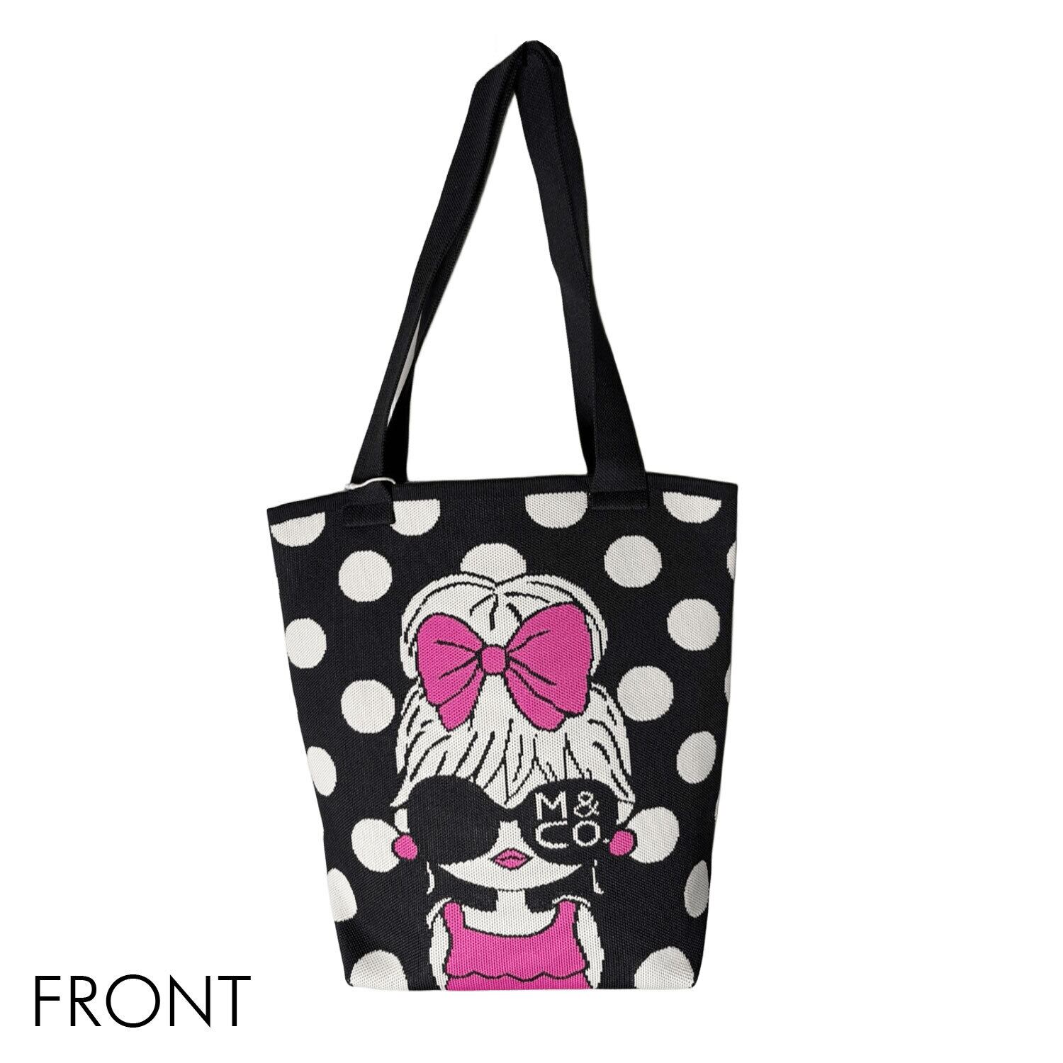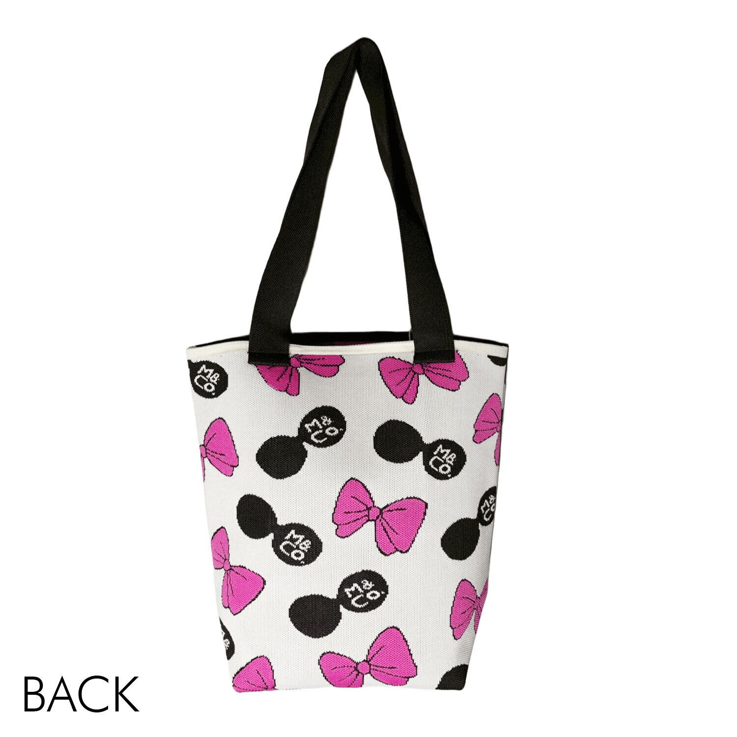 スタイリッシュさと機能性を兼ね備えたニットトート 表裏柄違い リボンガール ピンク