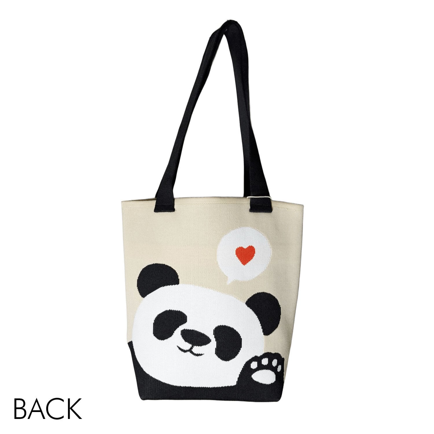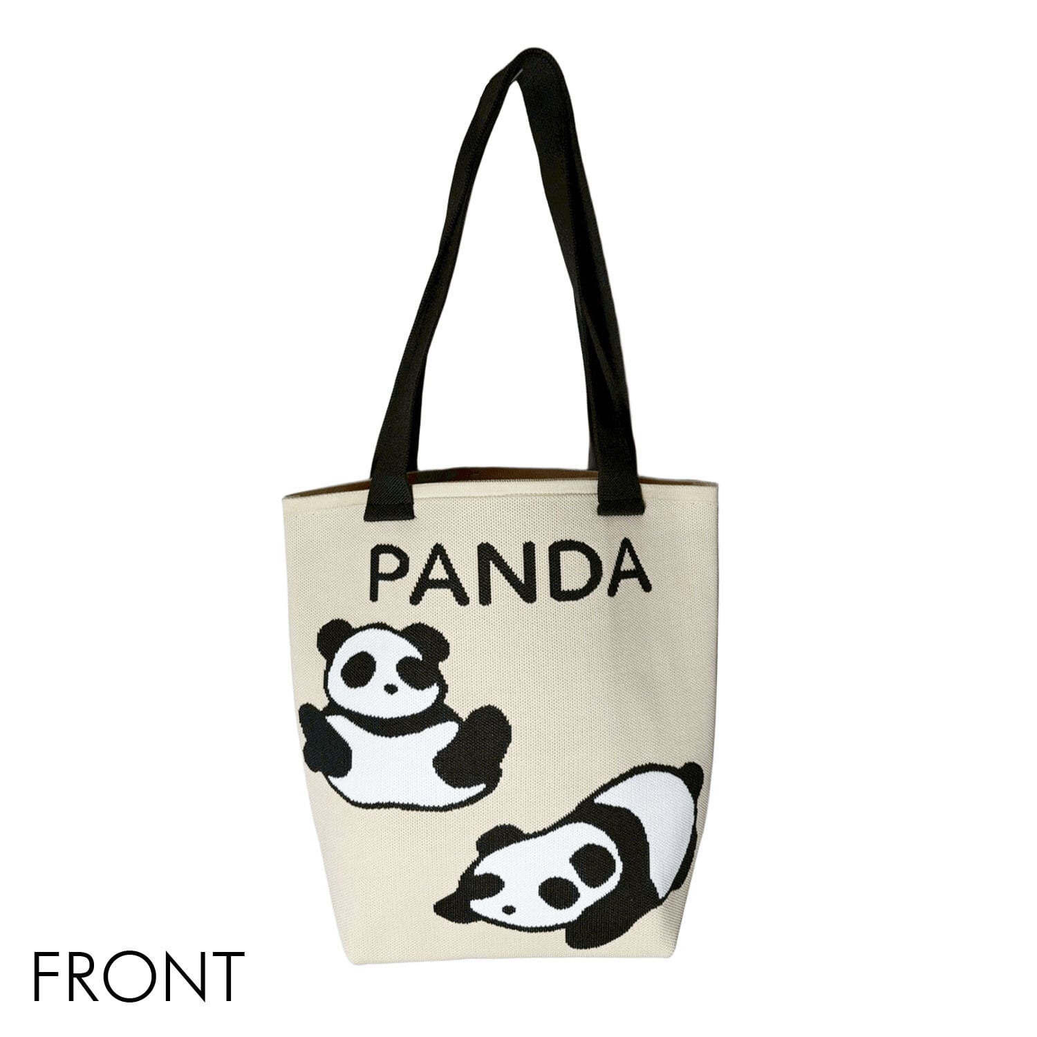 スタイリッシュさと機能性を兼ね備えたニットトート 表裏柄違い パンダ
