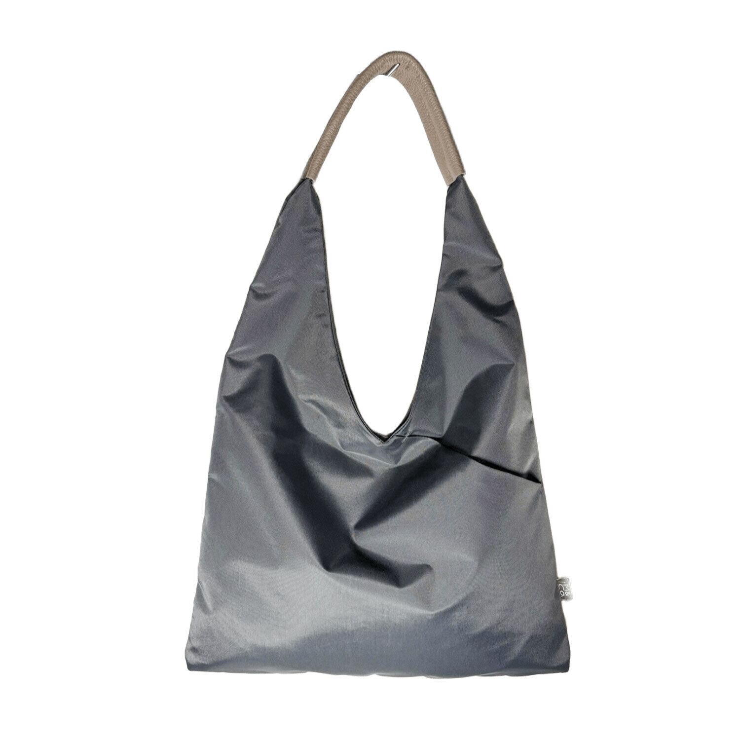 スタイリッシュさと華やかさを兼ね備えた革付属シャーリングナイロン グレー