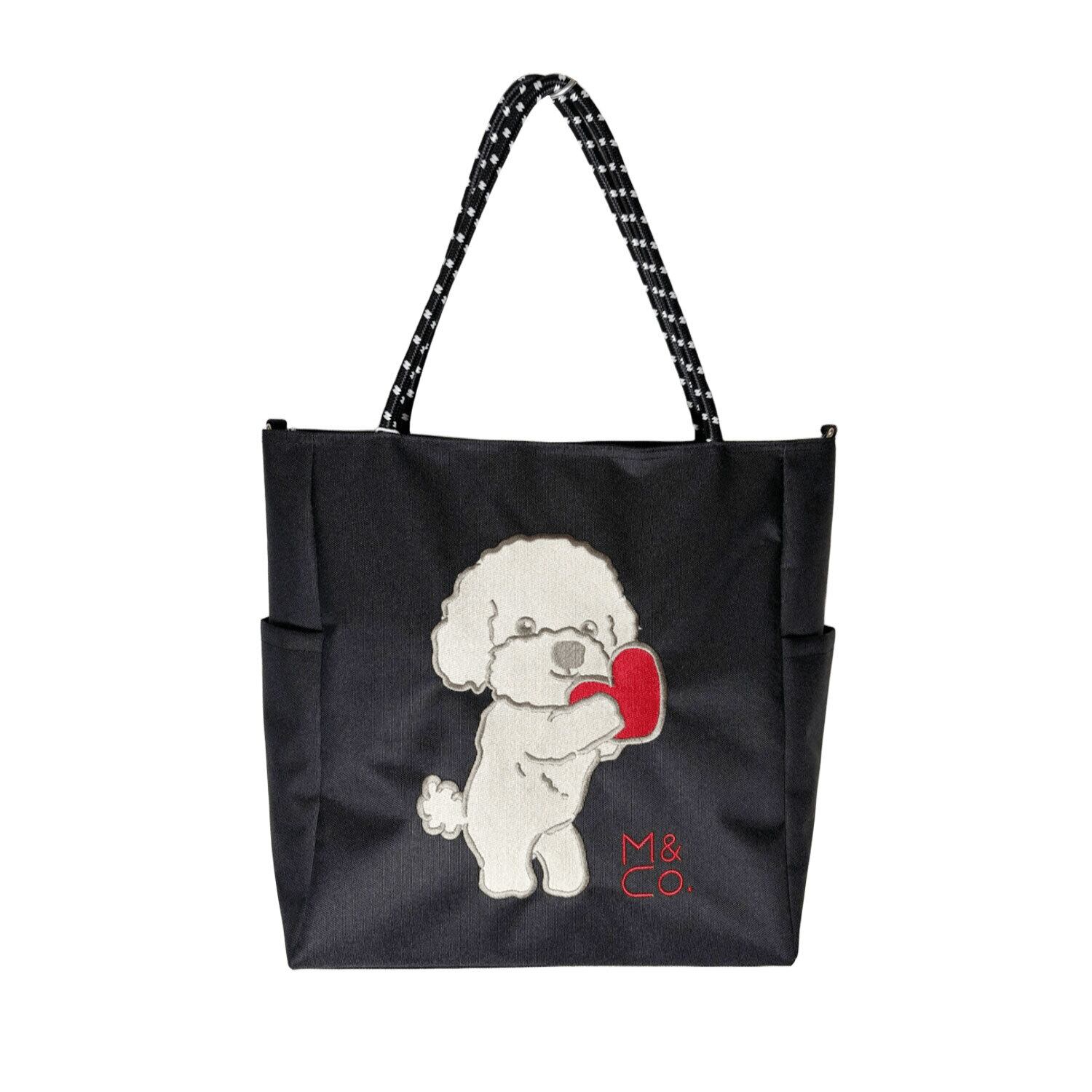 スタイリッシュさと洗練されたデザインを兼ね備えた刺繍ナイロントート ブラック